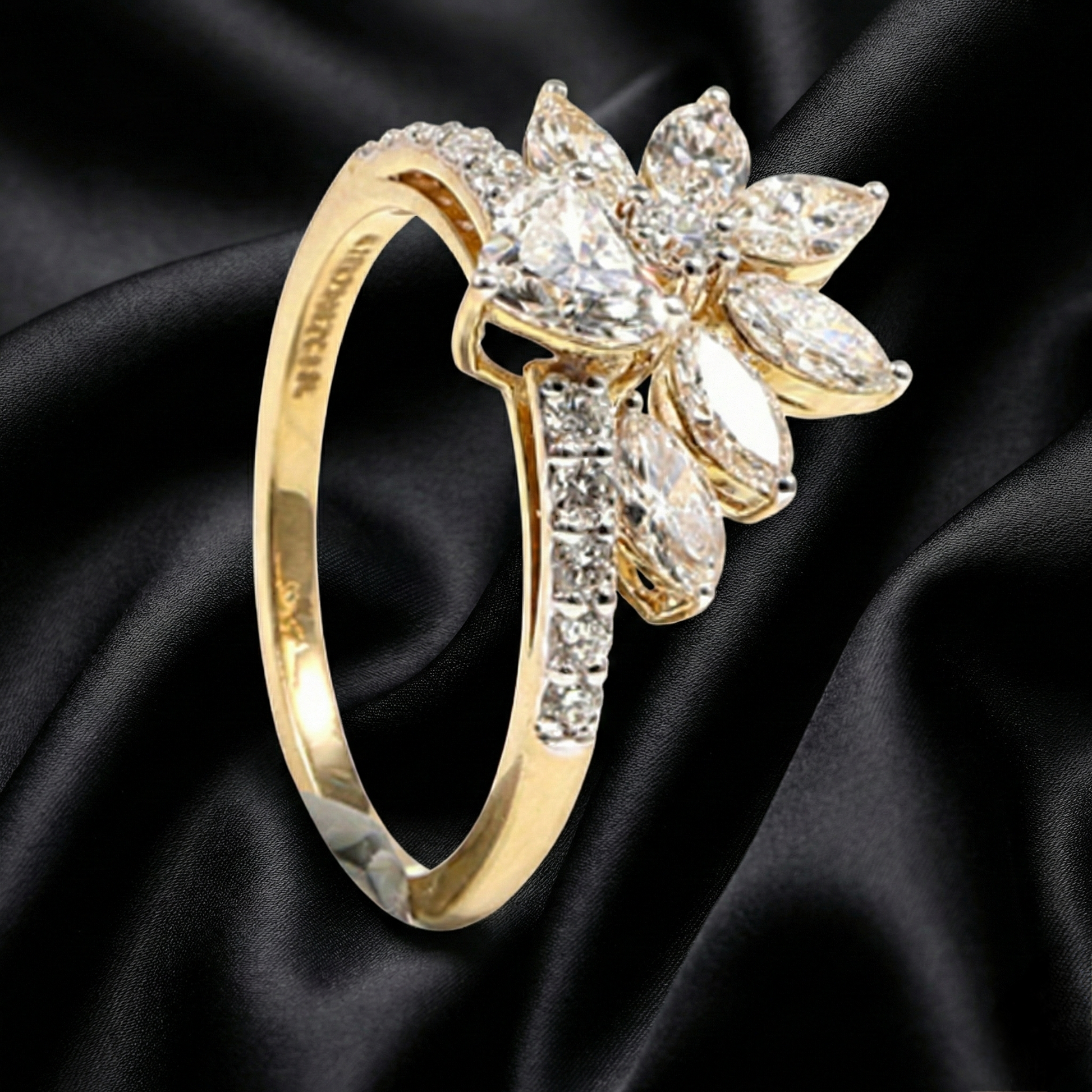 Heart and Floral Motif Ring with 1.2 Carats Lab-Grown Diamonds